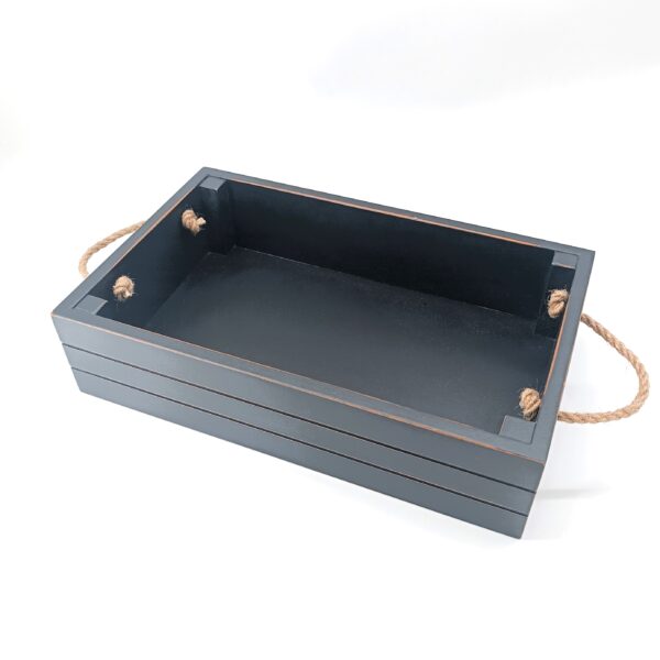 Ξύλινο κουτί από Mdf με λαβές από σκοινί, κατάλληλο για παρουσίαση φιαλών ποτού ή κρασιών, αλλά και συνθέσεις διάφορων προϊόντων.