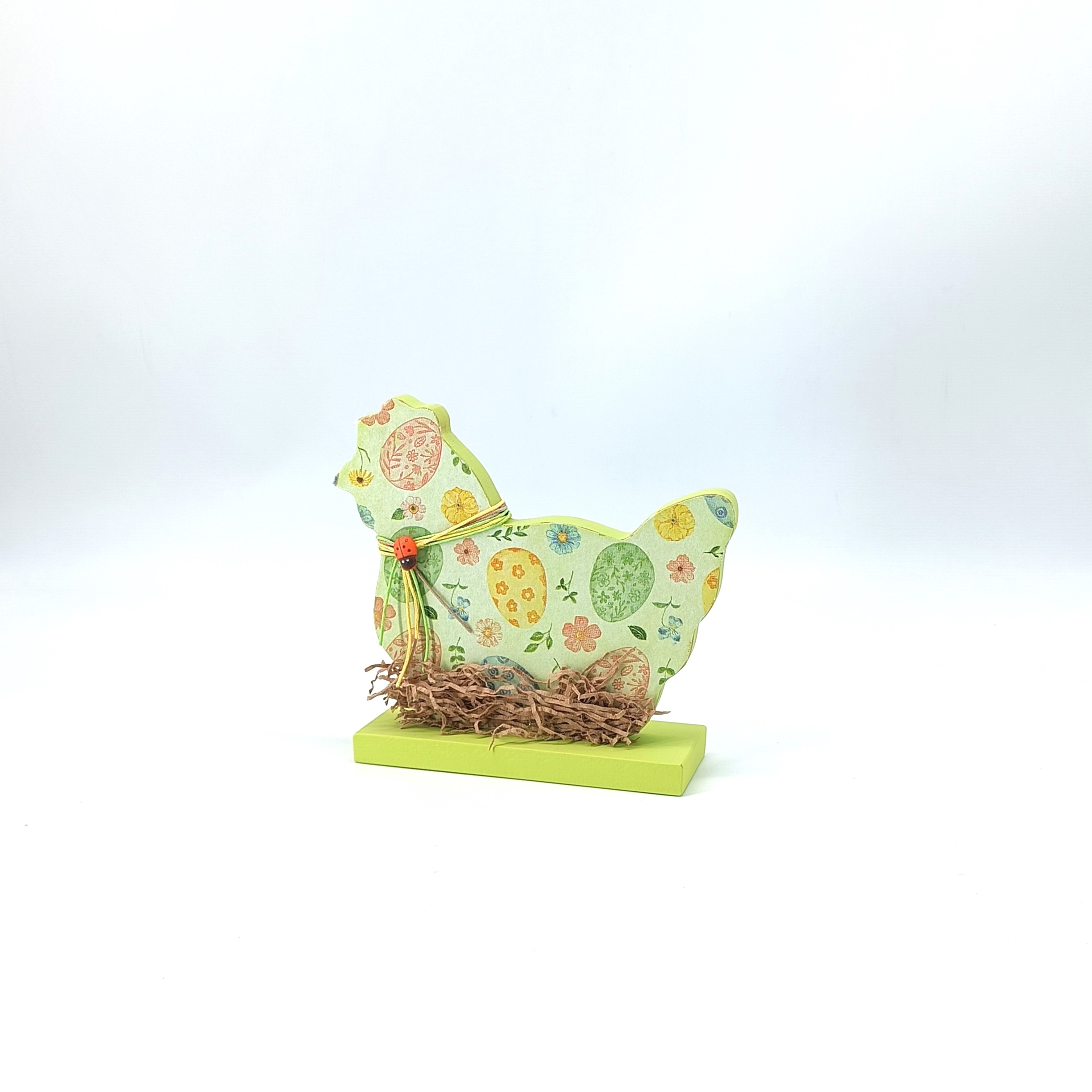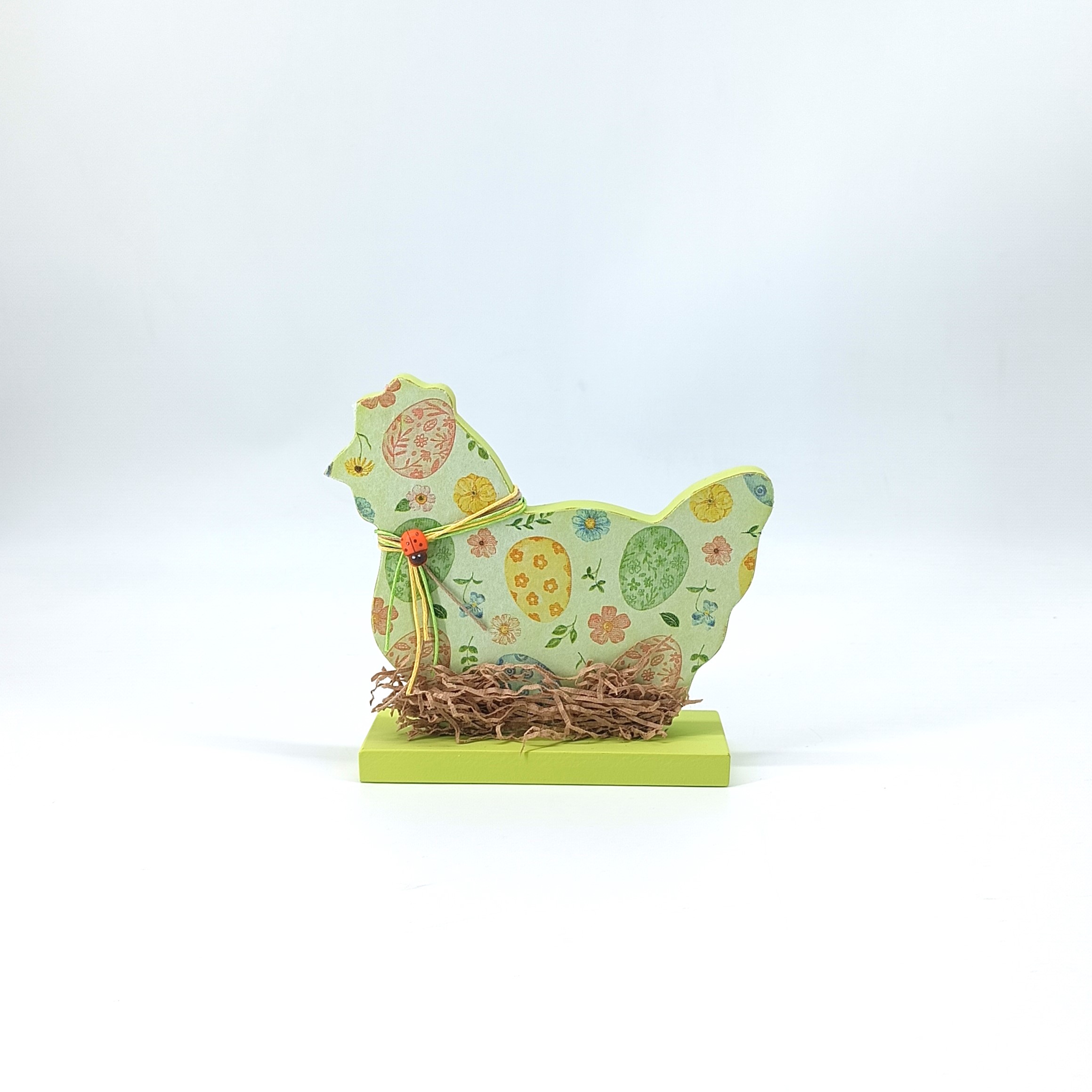 Ξύλινο πασχαλινό διακοσμητικό αυγό από mdf με την τεχνική του decoupage, ιδανικό για εποχιακή διακόσμηση ή δώρο.